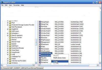 3.Lalu buka HKEY_CURRENT_USER - Software - Microsoft - Notepad pada registry editor