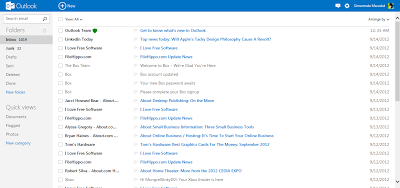 Outlook.com digadang gadang sebagai email modern untuk saat ini, dari segi tampilan atau outlook.com menganut tampilan windows 8 dan juga office 2013, meski office 2013 belum release tapi dari preview office 2013 yang saya coba memang tampilannya sama.coba sobat lihat tampilan webmail saya dari outlook.com