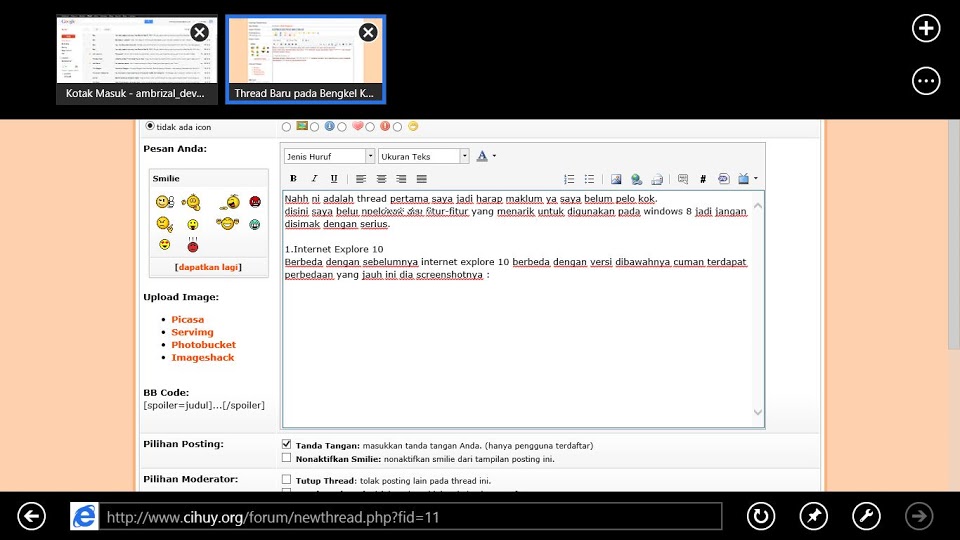 Berbeda dengan sebelumnya internet explore 10 berbeda dengan versi dibawahnya cuman terdapat perbedaan yang jauh gambar dia atasadalah screenshotnya.
